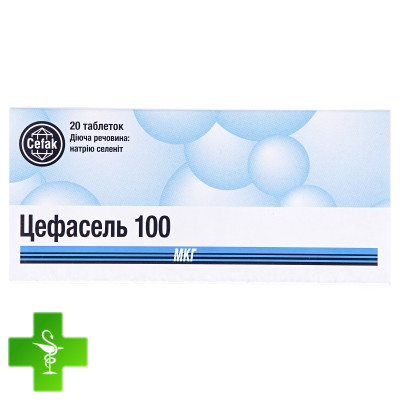 1 таблетка Цефасель 100 мкг містить 0,219 мг натрію селеніту (відповідає 100 мкг селену);