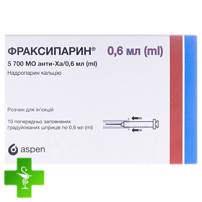 Фраксипарин, розчин д/ін. 9500 анти-Ха МЕ/мл по 0,6 мл в шпр, №10