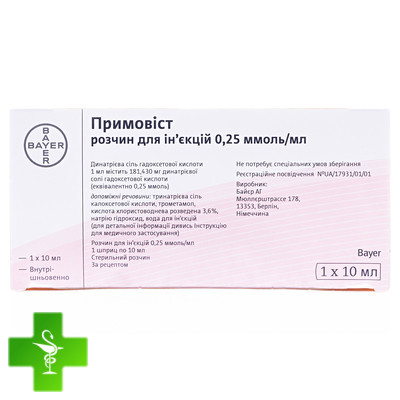 Примовіст, розчин д/ін. 0.25 ммоль/мл по 10 мл у шпр. скл.