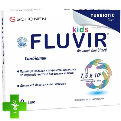 Флувир® для дітей - це симбіотик, що містить п'ять пробіотичних бактерій Lactobacillus plantarum LP01 та LP02, Lactobacillus rhamnosus LR04 та LR05, Bifidobacterium lactis BS01 та пребіотик - фруктоолігосахариди.