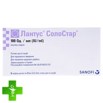 Лантус солостар, р-р д/ин. 100 ЕД/мл картр. 3 мл, №5
