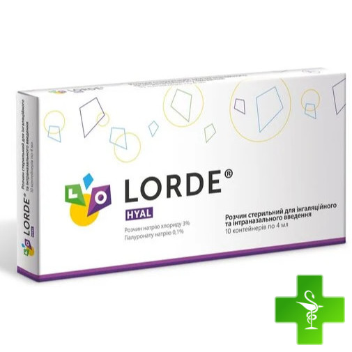 Lorde Hyal - стерильний розчин для інгаляційного і інтраназального введення, який полегшує дихання шляхом разрідження і поліпшення виведення секрету слизової оболонки носа верхніх і нижніх дихальних шляхів у пацієнтів з запальними захворюваннями органів дихання за рахунок осматіческого ефекту.
