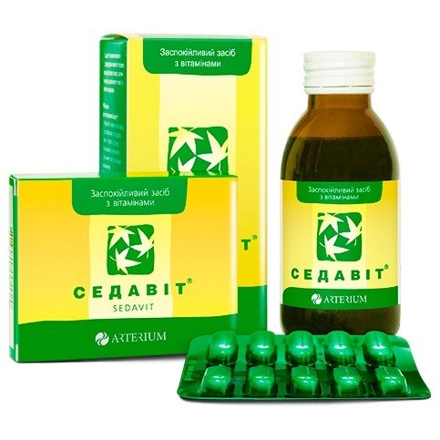 діючі речовини: Седавіт® екстракт рідкий (Extractum sedaviti fluidum) (екстрагент - етанол 35 % об/об) (1:4,5) - 0,94 мл з суміші ЛРС: валеріани кореневища з коренями (Valerianae Rhizoma cum Radicibus), глоду плоди (Crataegi fructus), звіробою трава (Hyperici herba), м'яти перцевої листя (Menthae piperitae folium), хмелю шишки (Lupuli flos); піридоксину гідрохлорид (вітамін В6) - 0,6 мг; нікотинамід (вітамін РР) - 3,0 мг;