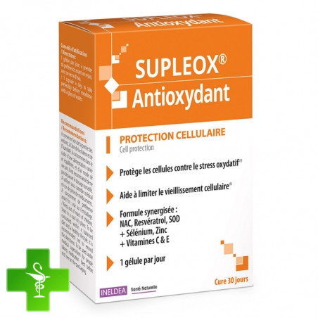 SUPLEOX® Antioxidant - дієтична добавка на основі СОД, транс-ресвератролу, N-ацетил-цистеїну, вітамінів С і Е, цинку та селену для обмеження старіння, зміцнення системи антиоксидантного захисту та захисту клітин від окисного стресу.