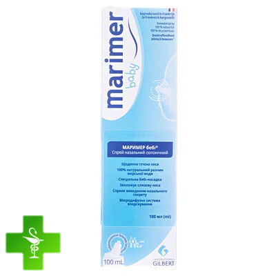 Спрей назальний ізотонічний МАРИМЕР бебі® - натуральний продукт, який є фізіологічним розчином морської води з мікродифузною системою впорскування. Від природи збагачений мінеральними солями та морськими мікроелементами, спрей назальний ізотонічний МАРИМЕР бебі® рекомендовано для новонароджених, немовлят та дітей молодшого віку для щоденного очищення носових ходів та зволоження слизової оболонки носа при сухості. Мікродифузна система впорскування в спреї назальному ізотонічному МАРИМЕР бебі® полегшує промивання носових ходів. Спеціальна захисна насадка сприяє безпечному застосуванню спрею новонародженим. Спрей назальний ізотонічний МАРИМЕР бебі® можна застосовувати у будь-якому положенні тіла. Належна гігієна носа допомагає захищати слизові оболонки від несприятливих факторів зовнішнього середовища (холодні погодні умови, алергени, сухе або забруднене повітря тощо) та забезпечує нормальне дихання носом. Немовлята у віці до 6 місяців дихають тільки через ніс.