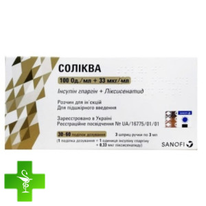 Соліква, р-н д/ін.100 Од./мл+33 мкг/мл 3мл (КАРТА "Керуй діабетом"), №3