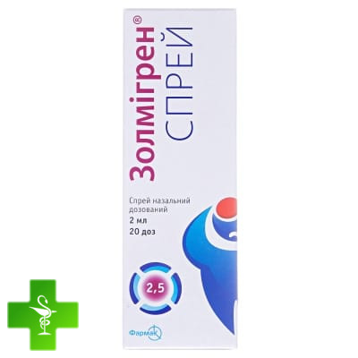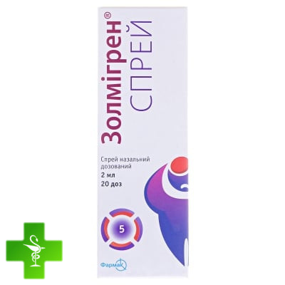 Золмігрен, спрей наз., доз. 5 мг/дозу по 2 мл (20 доз) у флак.
